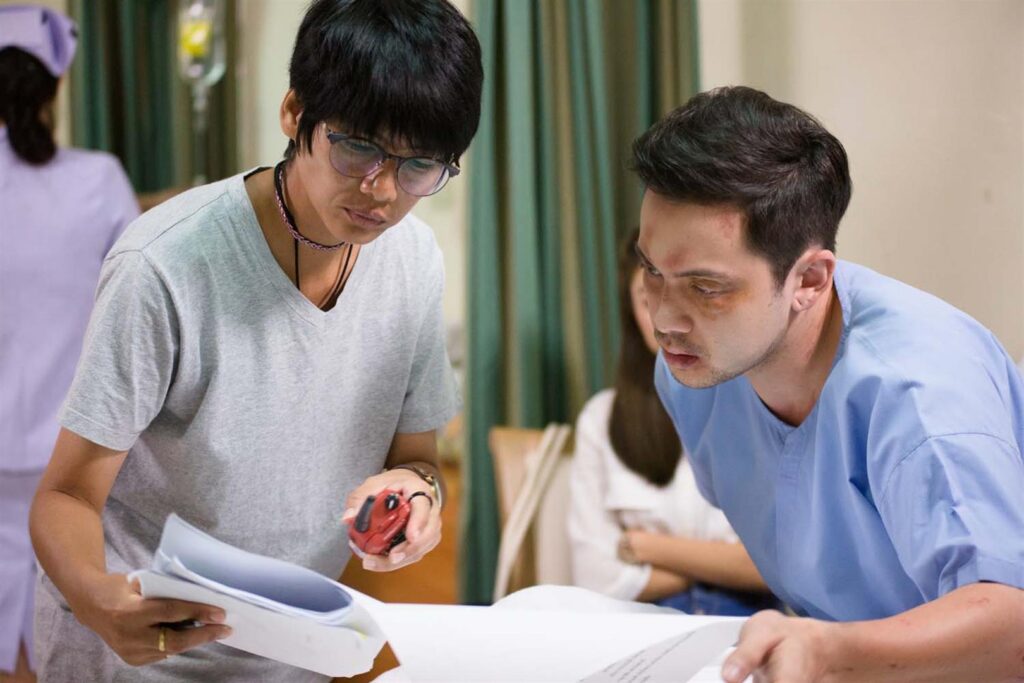 โดยฉากนี้อินดี้ก็ได้มีการแต่งหน้าเติมเอฟเฟคให้ดูเหมือนคนที่เพิ่งโดนซ้อมมาอยู่ในสภาพใบหน้าตาปูดบวมช้ำซึ่งก็ต้องใช้เวลาสำหรับทำเอฟเฟคพอสมควรเพื่อความสมจริง ก่อนจะเริ่มติวเข้มบรีฟอารมณ์ปรับโหมดความรู้สึกให้เข้าถึงตัวละครพร้อมกับยิปซีอย่างละเอียดทุกโมเมนต์ความเศร้าเสียใจ เพราะฉากนี้ค่อนข้างสำคัญถือเป็นจุดเปลี่ยนให้ ซัน (อินดี้) จริงจังเรื่องแก้แค้นมากยิ่งขึ้น เรียกว่าพอนักแสดงทั้งคู่ได้ซักซ้อมจนเข้าใจกันดีแล้ว ผู้กำกับจึงเดินกล้องถ่ายทำทันที เริ่มที่อินดี้ฟื้นตัวค่อยๆ ลุกขึ้นมาจะไปกดเงินเพื่อไปรักษาตาแต่โดนยิปซีห้ามไว้ ก่อนจะตัดสินใจบอกความจริงกับอินดี้เรื่องตาของเขา เท่านั้นแหละอินดี้ก็ปล่อยโฮออกมาทันทีพรั่งพรูทุกความสียใจกลายเป็นน้ำตาหยดเผาะๆ ไหลลงอาบแก้มอย่างน่าสงสาร จนทำให้ยิปซีก็ห้ามน้ำตาเอาไว้ไม่ไหวเป็นต้องรีบเข้าไปทำหน้าที่ดูแลปลอบใจพร้อมโอบกอดและร้องไห้เป็นเพื่อนอินดี้ด้วยความเป็นห่วงจากใจจริง บอกเลยว่าเป็นอีกซีนที่อินดี้และยิปซีเล่นได้อย่างน่าสงสารเพราะน้ำตามาเต็มอินเนอร์เต็มแมกซ์