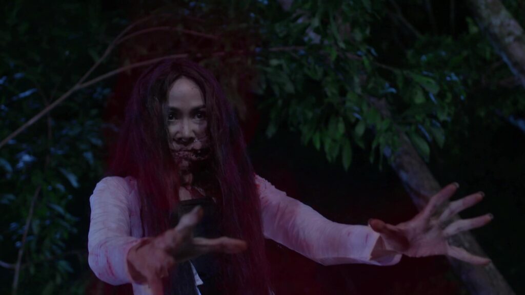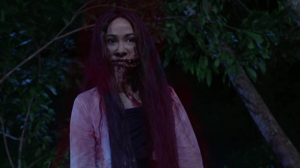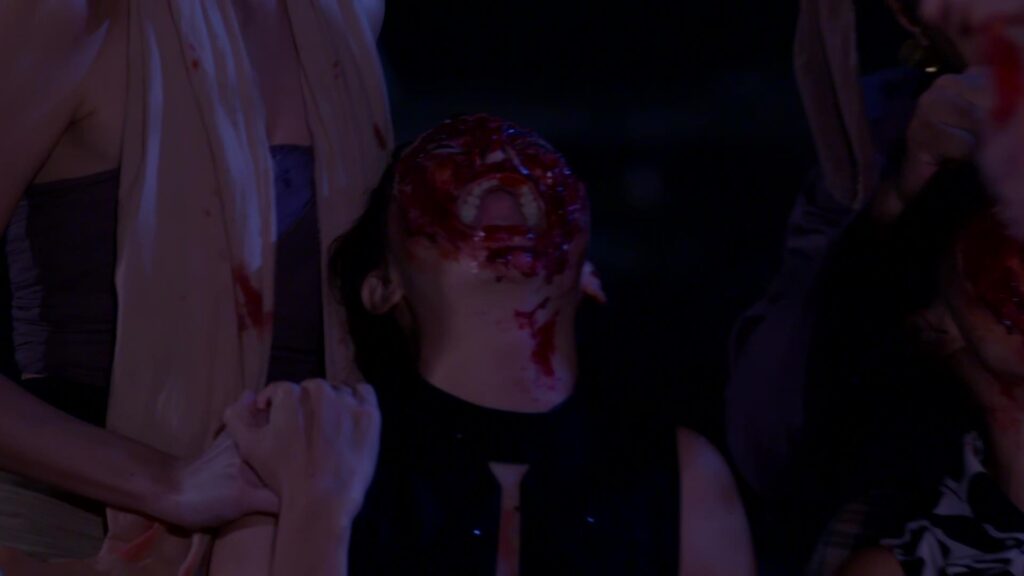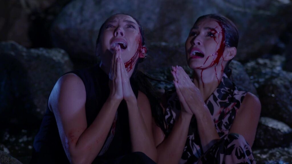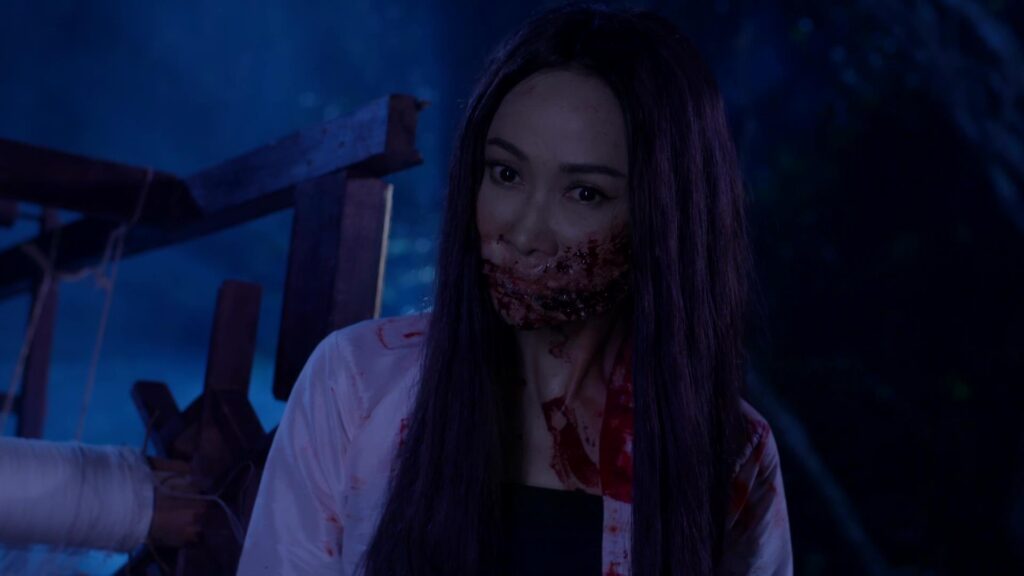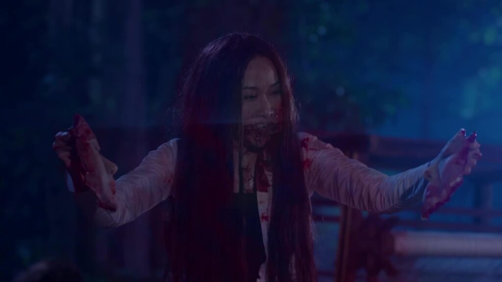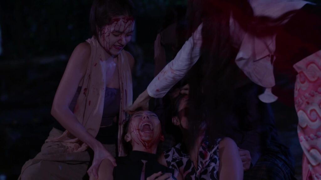เป็นฉากที่ มินพยู(ยุ้ย) รู้ความจริงว่าสองแม่ลูก อยู่เบื้องหลังแผนชั่วทั้งหมด จึงเกิดความแค้นในใจล่อลวง เลเลยา(คารีสา) และ เลนันทา(โบว์) มาที่น้ำตก มินพยูเล่นงานจนสองแม่ลูกกระอักเลือด และรวมพลเจ้ากรรมนายเวร มาตรึงแขนของสองแม่ลูกไว้ มินพยู ตรงเข้าถลกหนังหน้าสองแม่ลูกออกมา แล้วหัวเราะอย่างบ้าคลั่ง